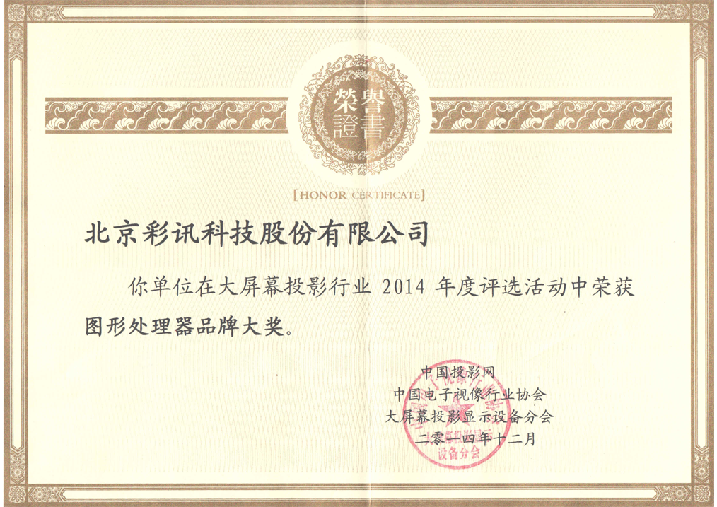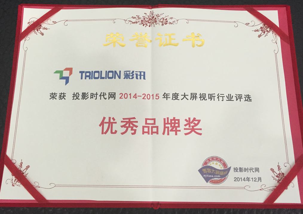 投影時代網(wǎng)年度優(yōu)秀品牌獎證書